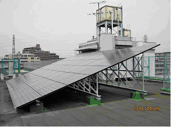 設置場所は屋上(面積100 m2 加重2.5 t〜3 t)です。また、災害時の非常用電源としても活用されます。